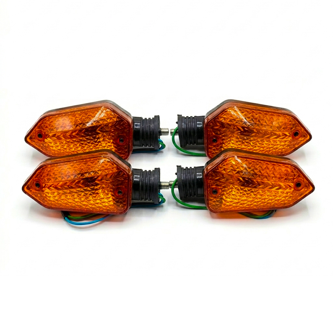 Add a touch of elegance to your motorcycle with the AutoPower Diamond-Mesh Indicators, specifically designed for the Unique 2021 model. These indicators feature a unique textured lens with a diamond-grid pattern that not only looks premium but also enhances light scattering for better visibility. The aerodynamic tapered shape blends perfectly with modern bike designs. Built with a high-flexibility rubber stem, these signals are engineered to withstand road shocks and prevent snapping during daily use.