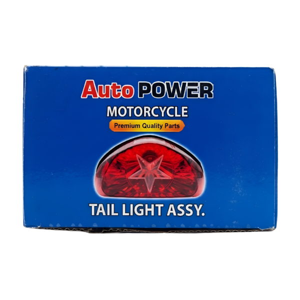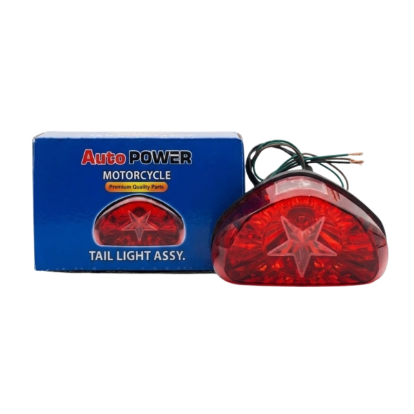 dd a unique flair to your motorcycle with the AutoPower Star Edition Tail Light, specifically designed for Super Star 70cc and compatible China 70cc models. This assembly stands out with its distinctive internal star-shaped reflector, which not only looks stylish but also helps disperse light more effectively for better safety. The high-gloss red lens is paired with a durable, heat-resistant housing to ensure long-lasting performance in all weather conditions.